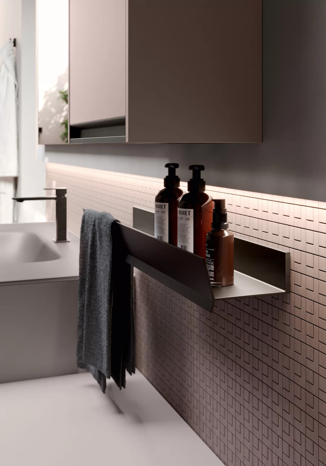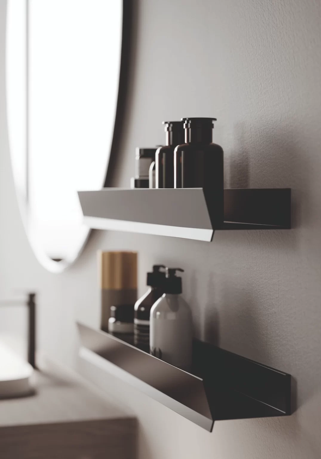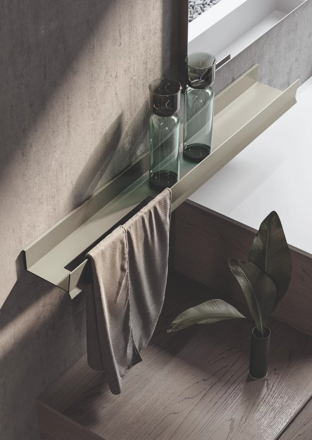 Ablage aus Aluminium mit/ohne Handtuchhalter, erhältlich in Schwarz, in Edelstahl, in allen matten Farben von Ideagroup und in Metal Color.