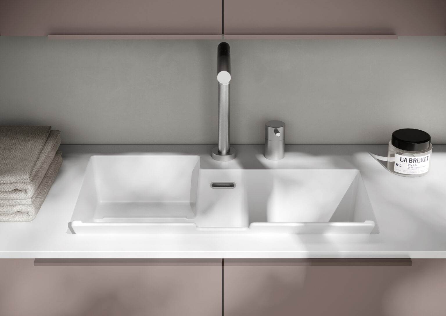 Die Ausgussbecken aus Mineralsolid / Mineralux bestehen aus natürlichen Mineralfüllstoffen (Kalziumkarbonate und Aluminiumhydroxid) und Polyesterharzen, mit einer Gelcoat-Oberflächenbeschichtung aus Polyesteracryl mit mattem Finish.