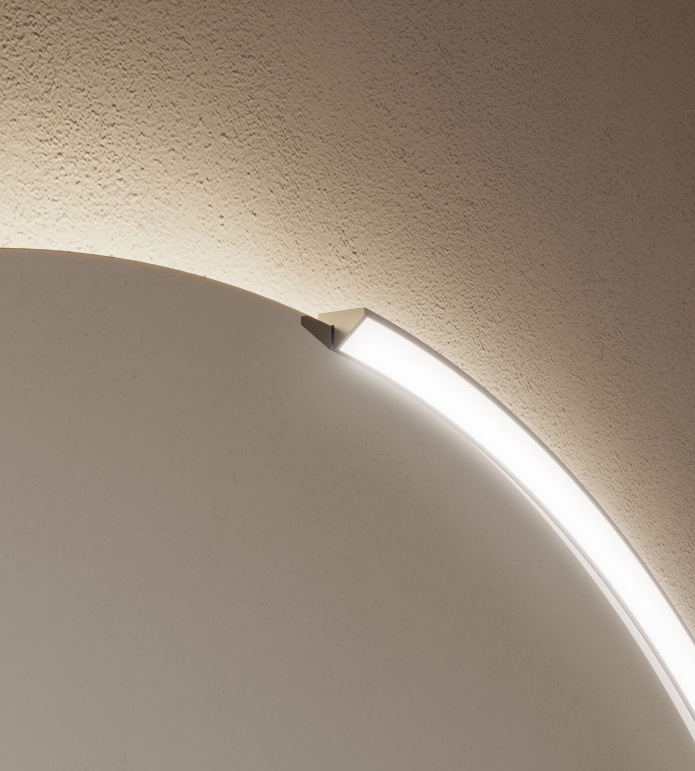 Leuchte Arko 140, montierbar an den Spiegeln Platea, Lunetta und Ninfea. Ausgestattet mit LED-Beleuchtung. IP44 – 3000 K oder 4000 K. W 25 – Lm 2100