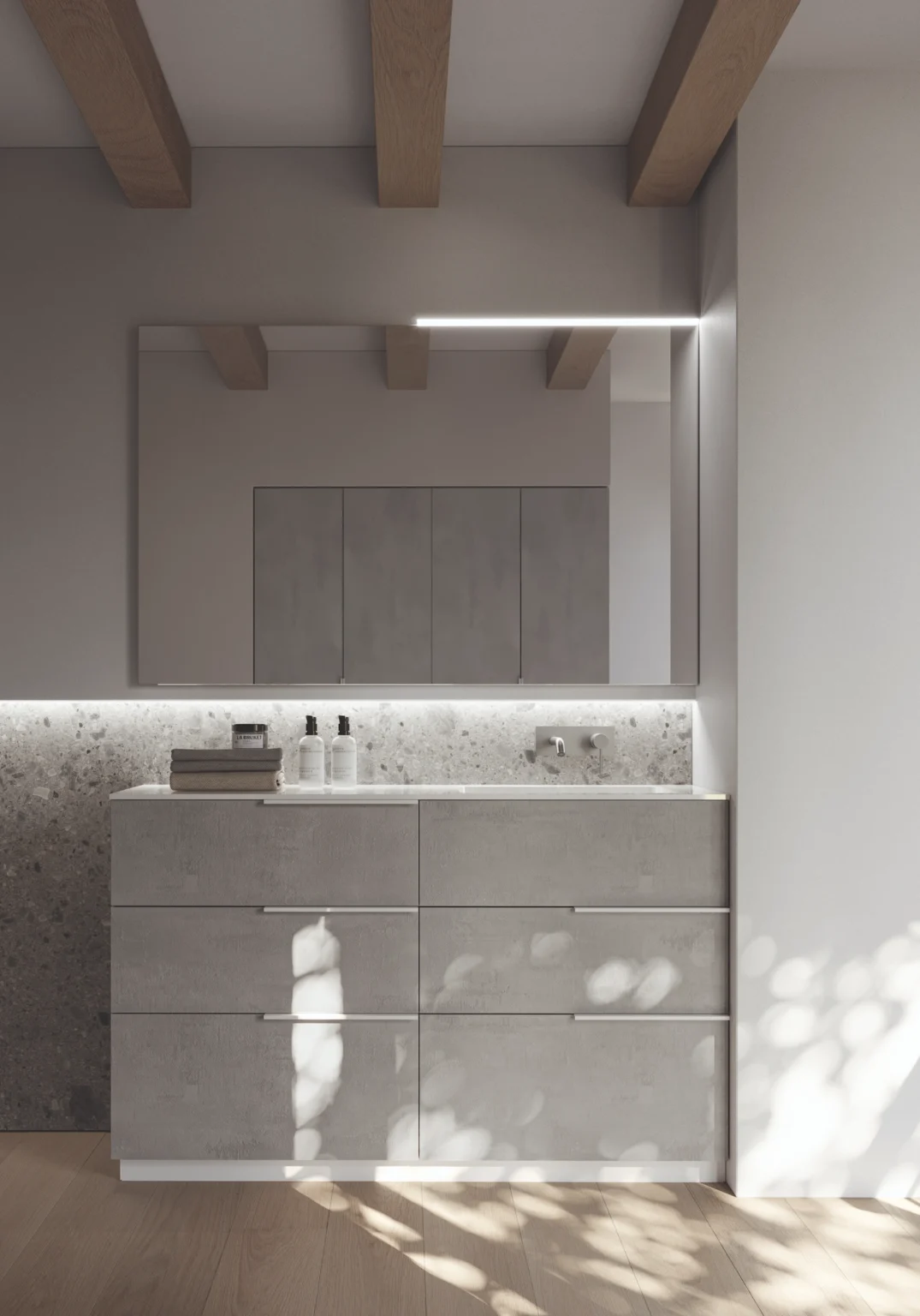 Leuchte Strip, montierbar an den Spiegeln Elma, Elmas, Lag/Lan und Sat/Sal. Ausgestattet mit LED-Beleuchtung. IP44 – 4000 K W von 5,2 bis 8 – Lm von 520 bis 800