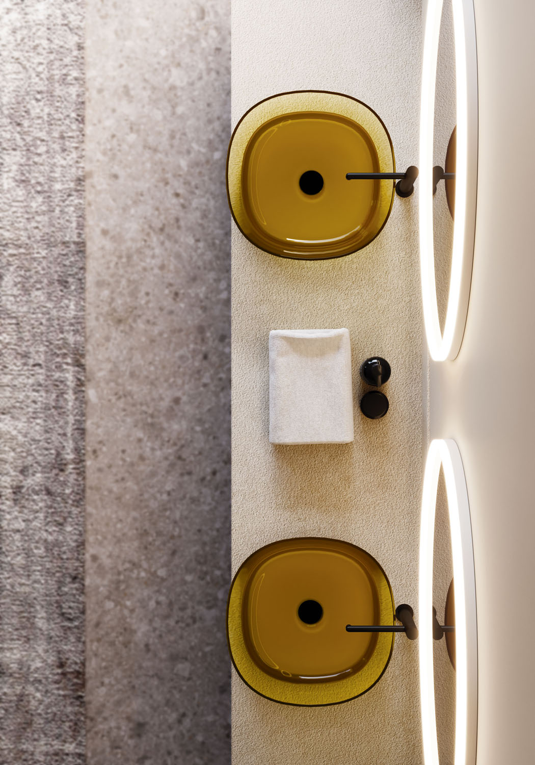 Ausführungen: Khromalite Graphite, Amarena, Oceano, Verde Mare, Giallo Oliva.