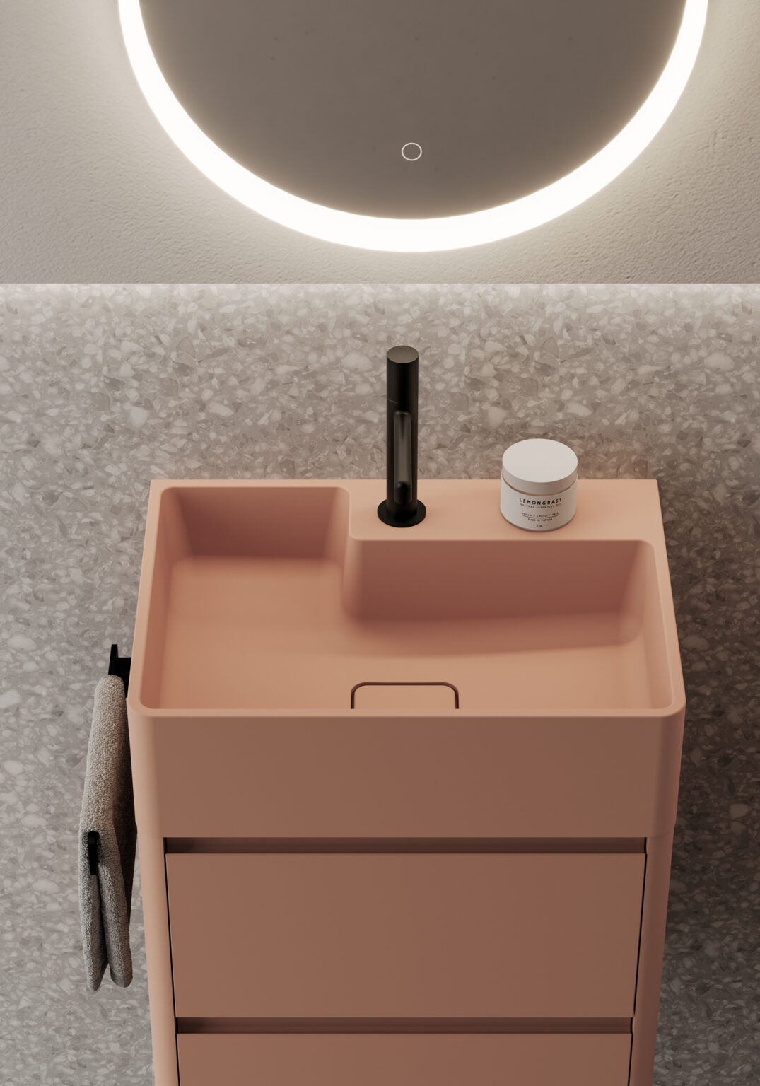 Aquatek ist ein Material mit matter und glatter Oberfläche, das zu etwa 2/3 aus natürlichem Mineralstoff und zu 1/3 aus hochwertigem Acrylharz besteht. Dieses Material ist durchgängig homogen, widerstandsfähig und nicht porös. Seine Farbe bleibt dauerhaft unverändert, und es lässt sich bei Kratzern und Schlagstellen problemlos reparieren. Aquagel ist ein Verbundwerkstoff aus natürlichen Mineralfüllstoffen und Polymerharzen, der mit Harz beschichtet ist, wodurch er absolut undurchlässig und beständig gegenüber Chemikalien ist. Aquagel fühlt sich an wie Keramik, bietet jedoch eine längere Lebensdauer und eine ansprechendere Optik. Er ist sowohl in matter als auch in glänzender Ausführung, in Weiß und in allen Farben von Ideagroup (außer Schwarz und Metal Color) erhältlich. Aquagel ist antibakteriell, flammhemmend und selbstverlöschend.