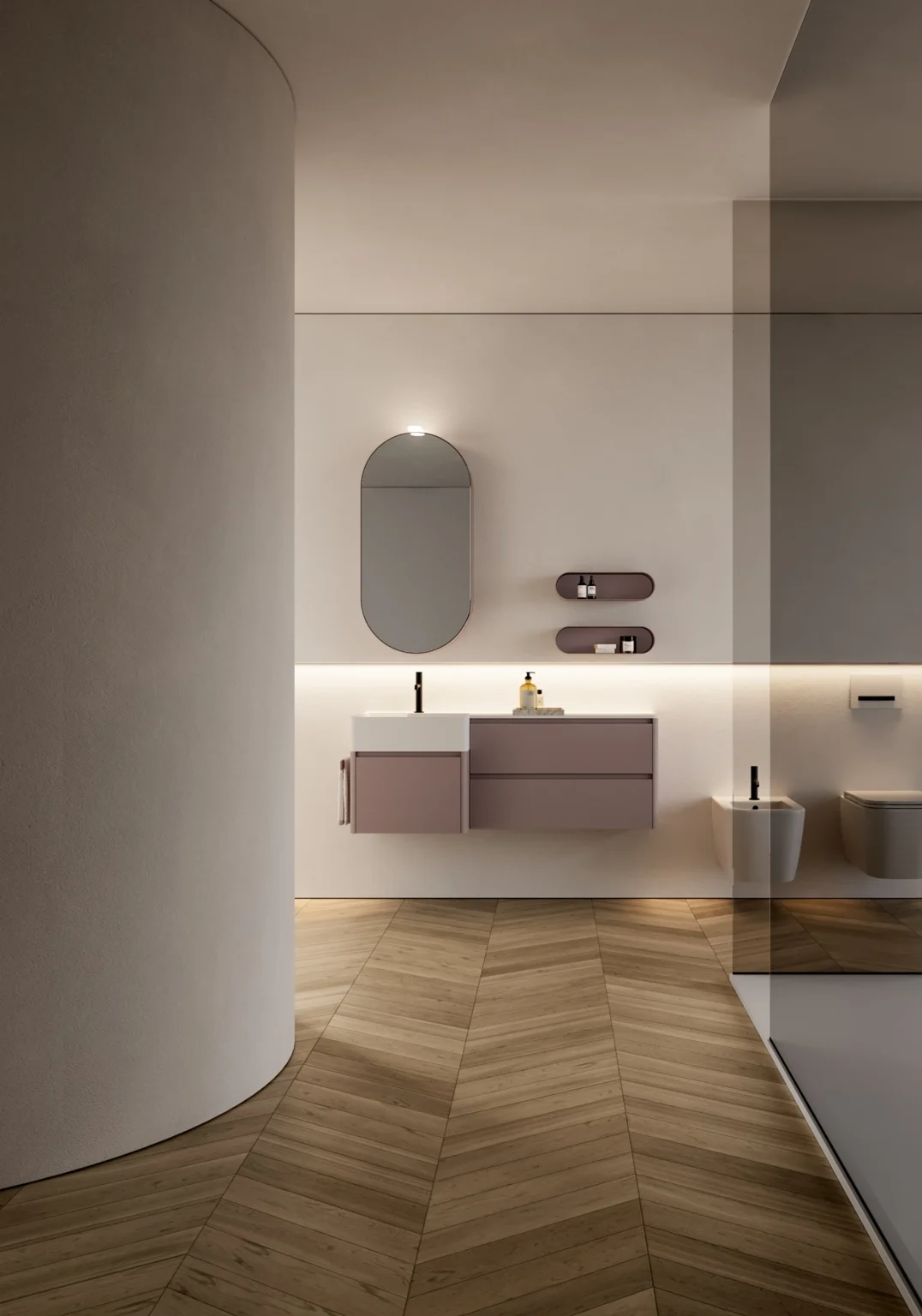 Spiegelschrank Arena mit schwarzem Aluminiumrahmen innen, verspiegelter Rückwand und Metallrahmen außen. 1 Tür rechts/links und drei Fachböden. Kompatibel nur zur Leuchte MUSE. IP44 – 3000 K oder 4000 K W 6,4 – Lm 550 Sonderzubehör: Modul mit Steckdose und Modul mit Steckdose und Schalter. Die Steckdose befindet sich immer unten rechts.