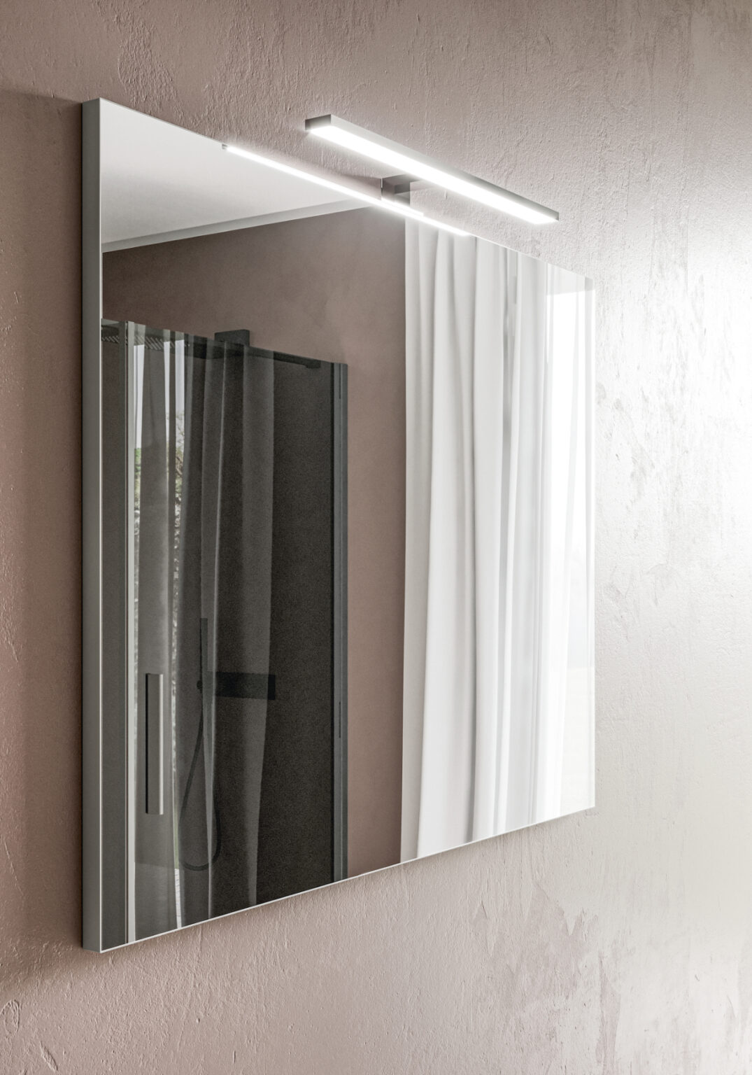 Spiegel Elma H. 70 mit Rahmen in der Ausführung Chrom hochglanz. Horizontale oder vertikale Montage. Kompatibel zu Leuchten Cubik, Double, Lido, Reflex, RS, Strip, Symply, Time, Web und Piuma.