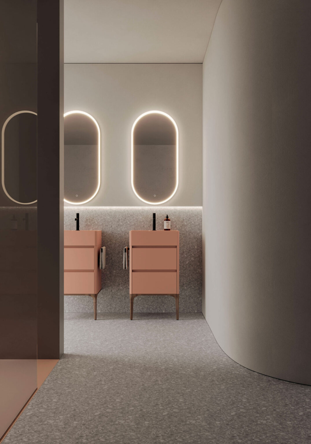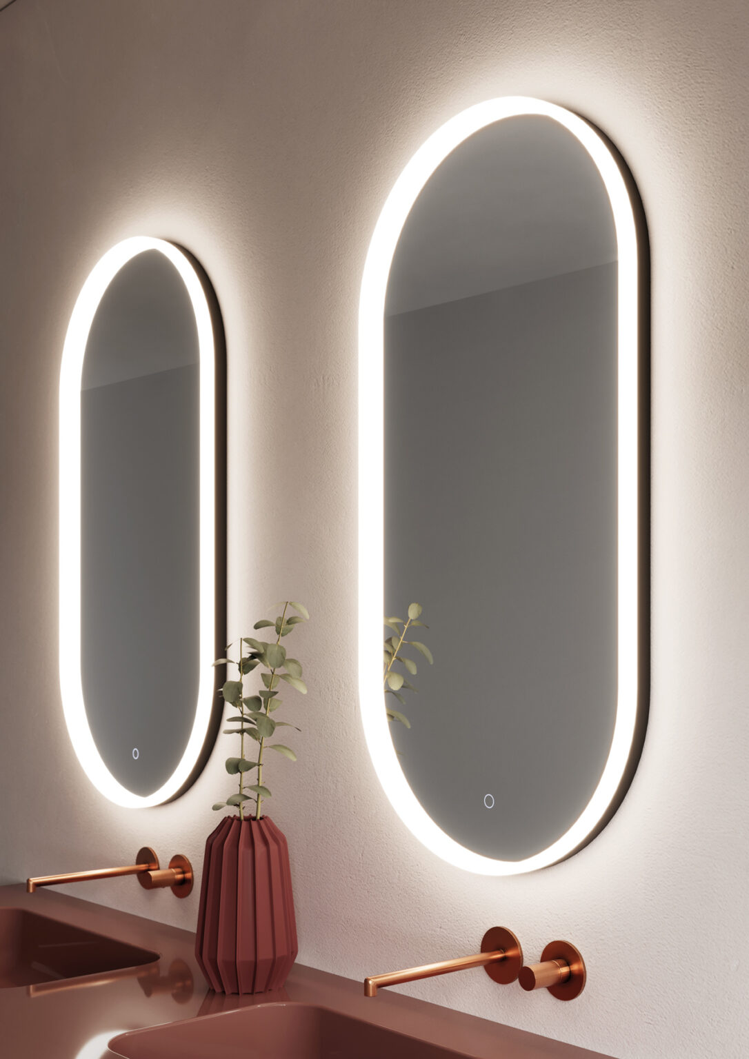 Spiegel Nettuno mit umlaufender Beleuchtung, Touch On-Off Funktion und Farbtemperaturwechsel 2700/6000 K. Nur vertikale Montage. IP44 W 25 – Lm 2500