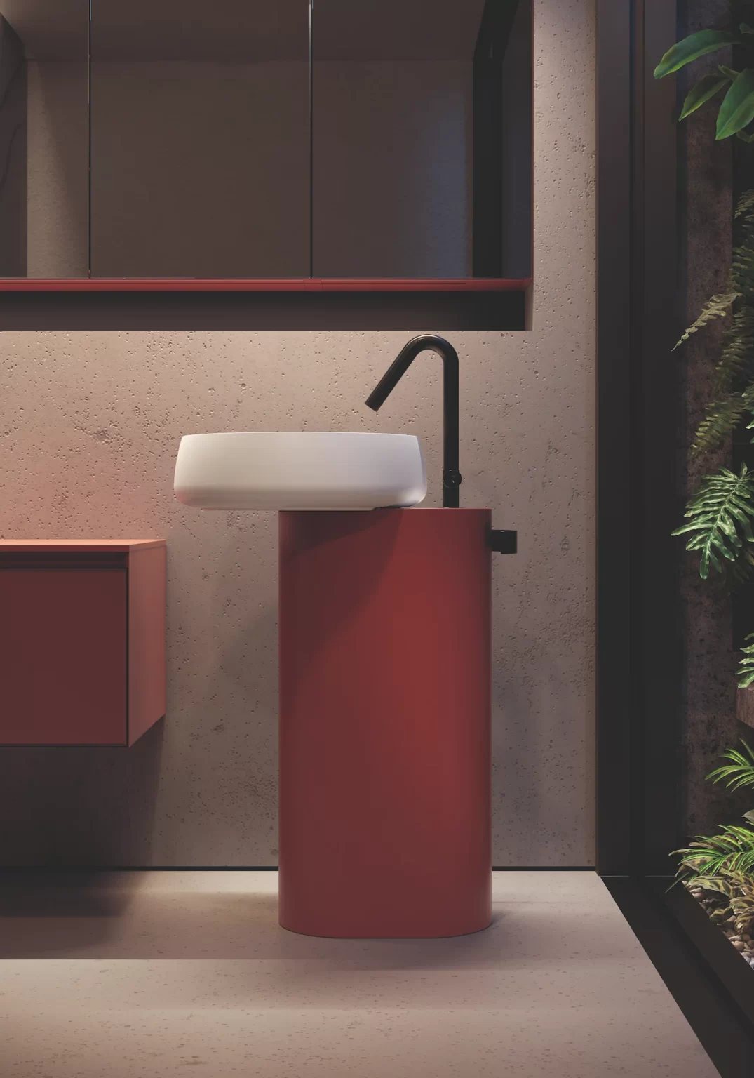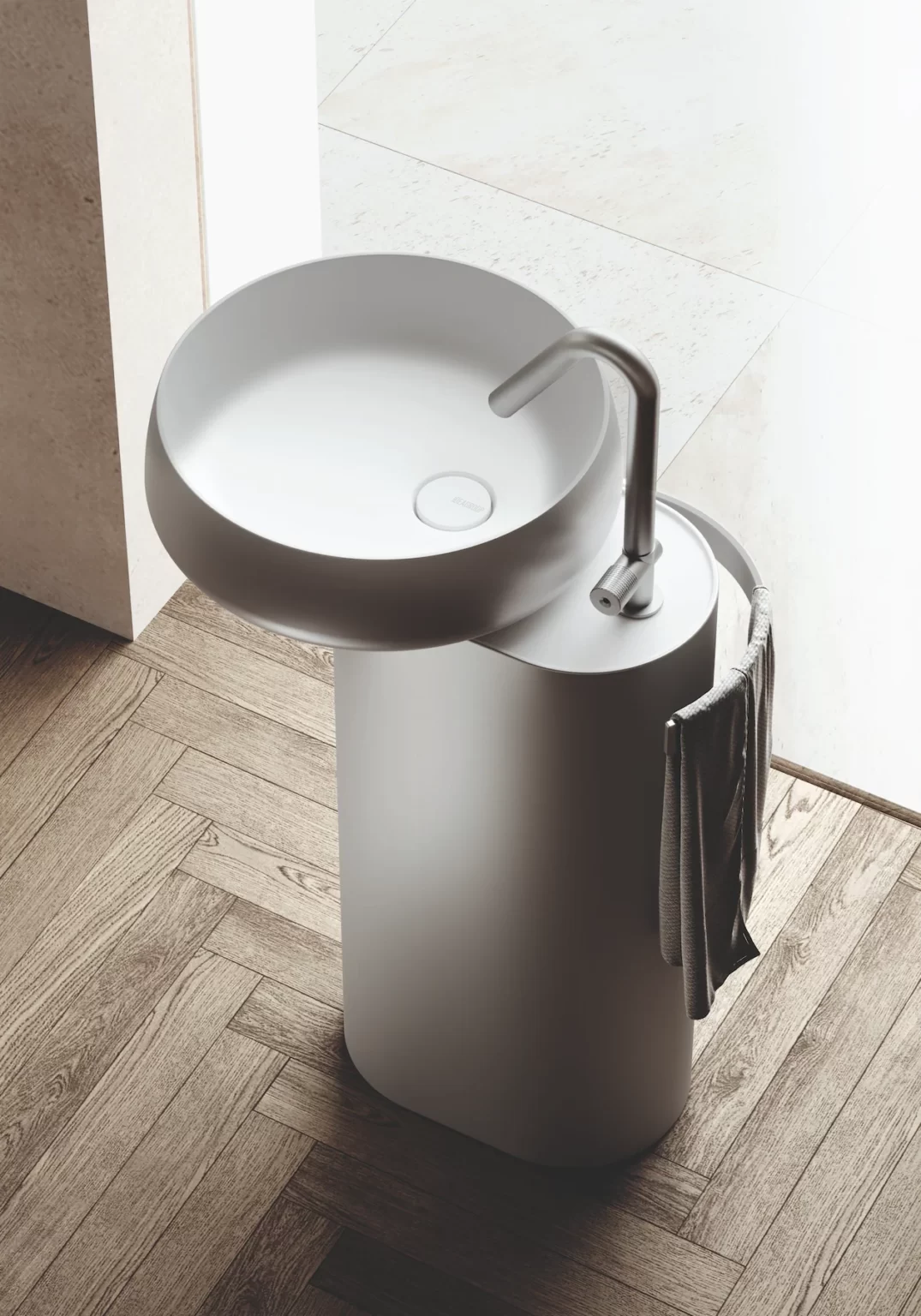 Standwaschbecken Beauty aus Cristalplant® (weiß matt, oder nur außen oder ganz in den matten Farben von Ideagroup und in Metal Color – Metal Color nur außen). Mit Hahnloch, ohne Überlauf.