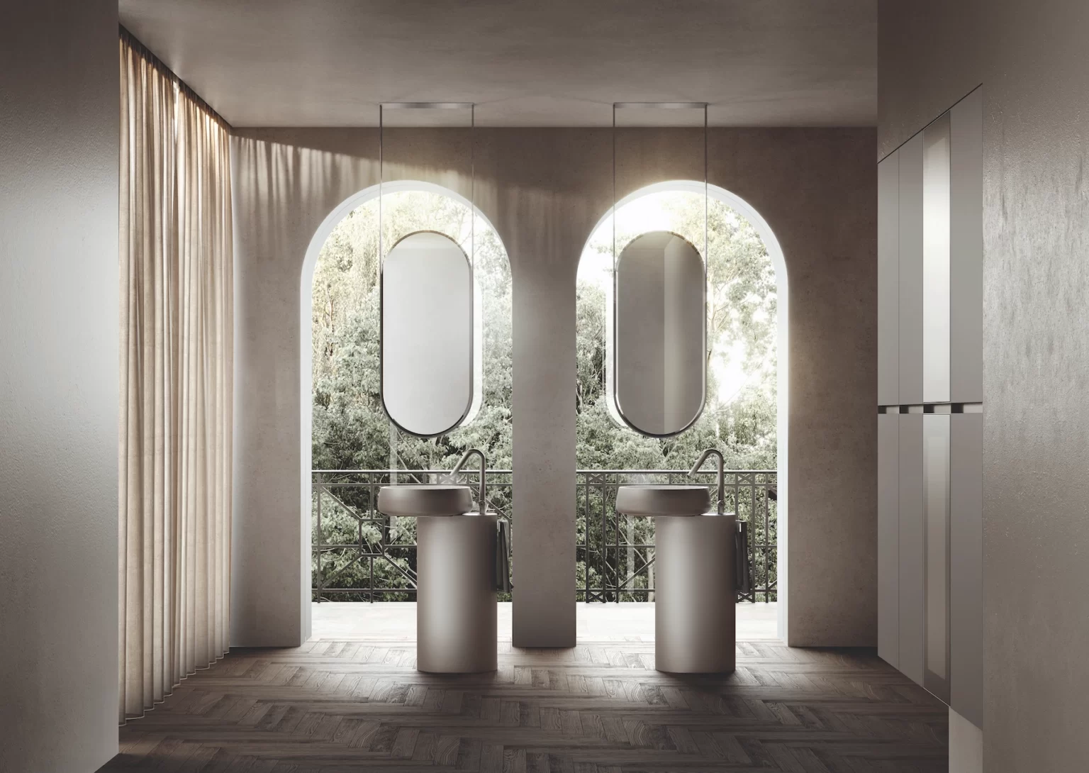 Das Material Cristalplant® ist für seine natürlich schöne Steinoptik mit Soft-Touch-Oberfläche bekannt. Es besteht zum größten Teil aus hochreinen Aluminiumhydroxid-Mineralfüllstoffen, die durch Biobased® Harze mit pflanzlichem Ursprung (Mais) gebunden sind. Es ist widerstandsfähig und aufgrund von Photokatalyse antibakteriell. Kratzer, Schrammen und Vergilbungen können langfristig beseitigt werden und es ist am Lebensende recycelbar.