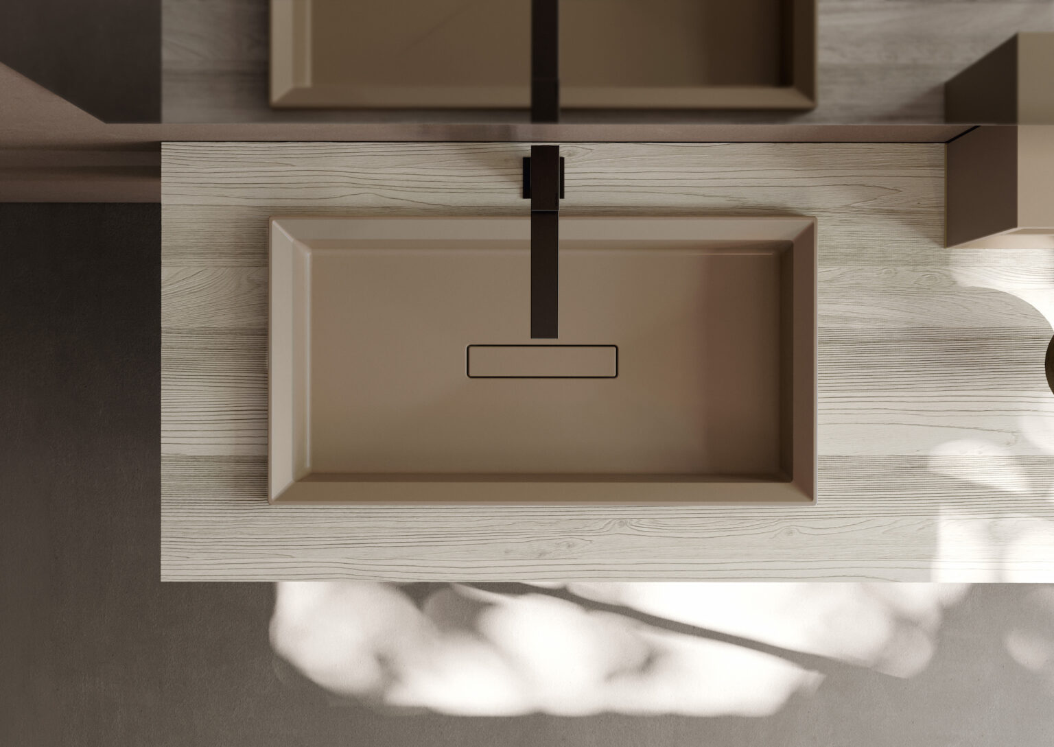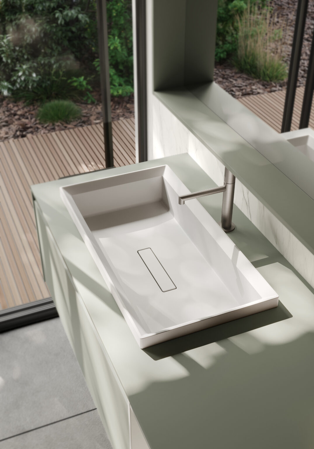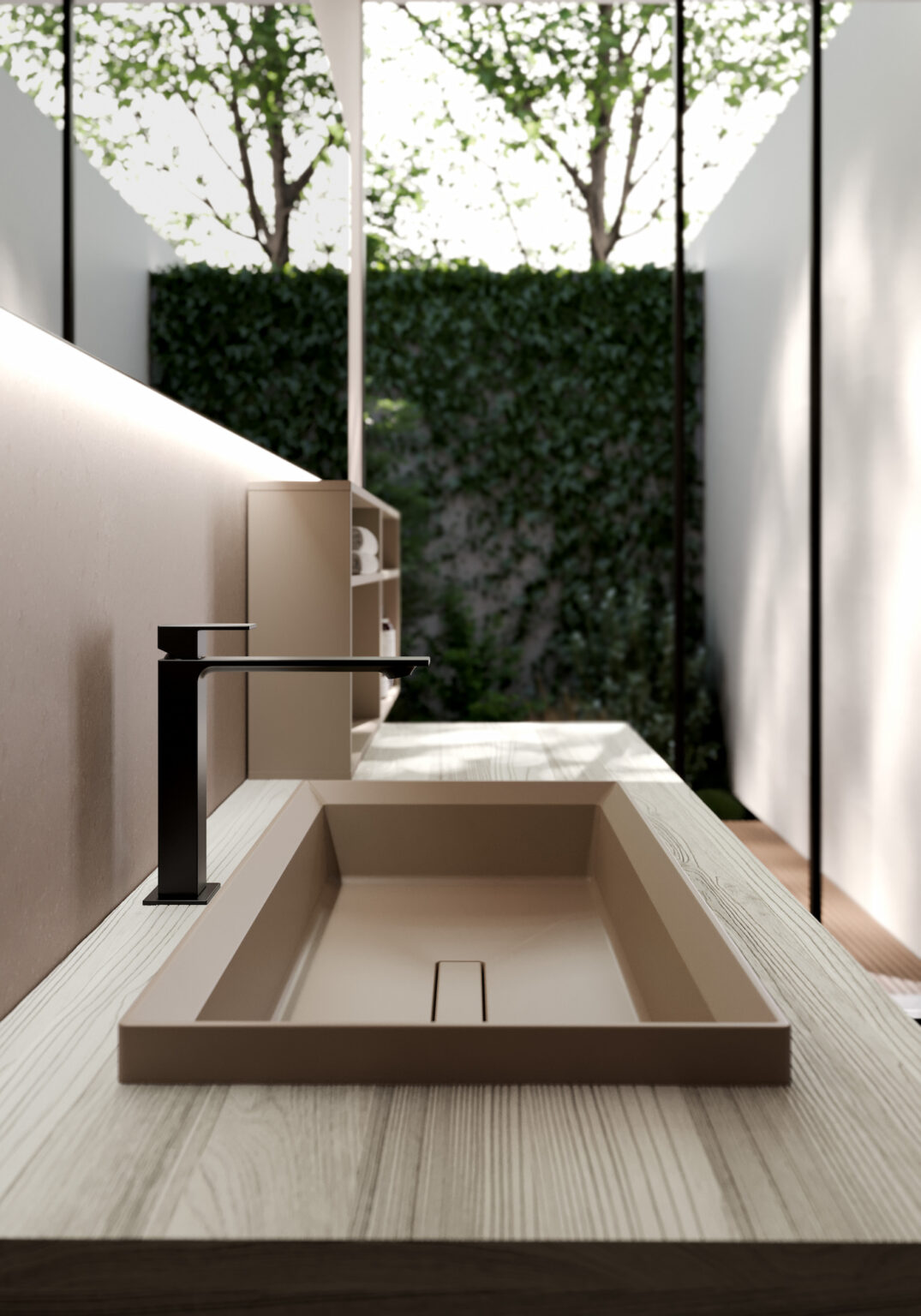 Die Waschbecken aus Mineralsolid / Mineralux bestehen aus natürlichen Mineralfüllstoffen (Kalziumkarbonate und Aluminiumhydroxid) und Polyesterharzen, mit einer Gelcoat-Oberflächenbeschichtung aus Polyesteracryl mit mattem Finish. Erhältlich in matt weißer Ausführung und in allen Farben von Ideagroup (außer Schwarz und Metal Color).