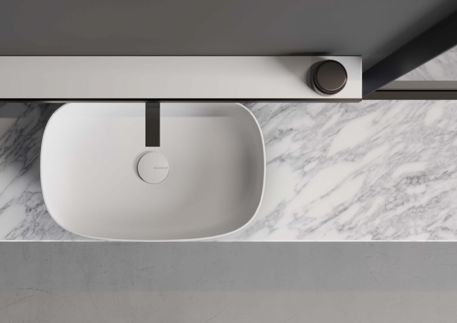 Aufsatzwaschbecken Laguna05 aus Cristalplant® (weiß matt, oder nur außen oder ganz in den matten Farben von Ideagroup und in Metal Color – Metal Color nur außen). Ohne Überlauf. Erhältlich für gerade Waschtischplatten mit einer Tiefe von 36 cm und 45,5 cm.