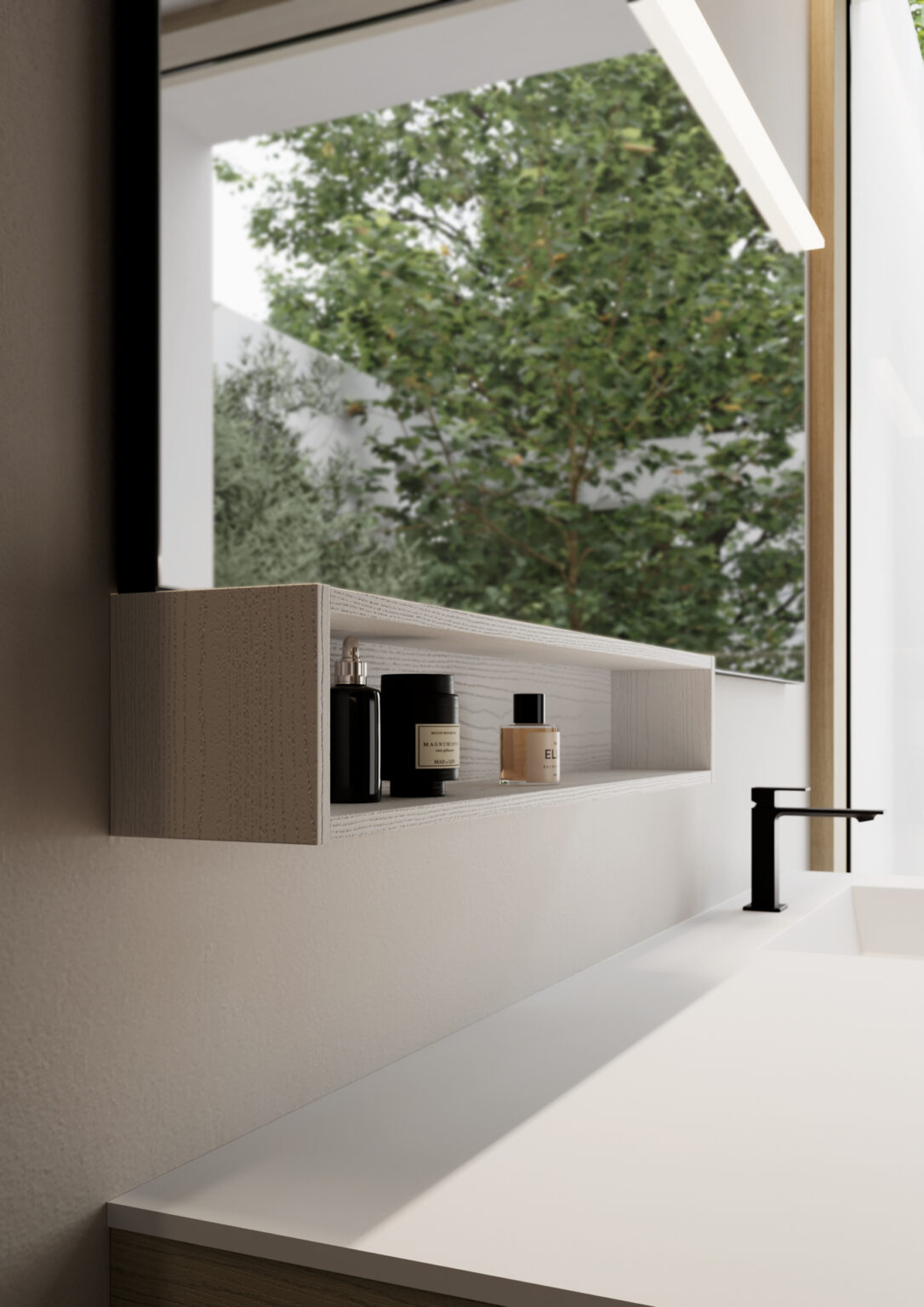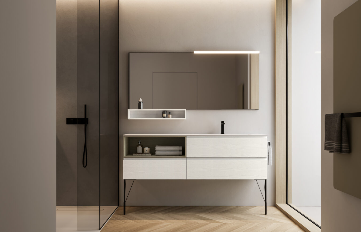 Zubehör Linear Offene Ablage mit Handtuchhalter St. 1,2 cm, Ausführung nach Wunsch.