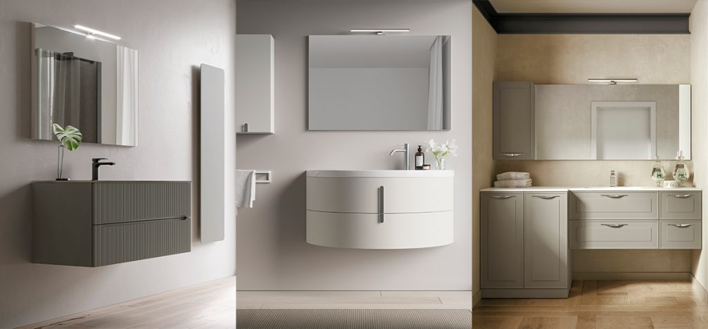 Die Einrichtungskollektion Smyle ist für funktionale, dynamische Bäder konzipiert. Sie passt sich flexibel den räumlichen Anforderungen an, ohne dabei auf schlichte, moderne Eleganz zu verzichten. Rationale Formen und raffinierte Details wie die neue wellenförmige Front, die in allen Ausführungen erhältlich ist. Die geschwungenen Linien der Kollektion Moon sind von einer der Mondphasen inspiriert. Die Eleganz des originellen geschwungenen Waschbeckens aus weißer Keramik wird durch den Unterschrank hervorgehoben, der in einer großen Auswahl an matten und glänzenden Lackierungen sowie in den natürlichen, strukturierten LB-Ausführungen erhältlich ist. Die Kollektion Dressy wurde mit einem neuen, eleganten Stil überarbeitet, der Moderne und Vintage miteinander verbindet. Holzausführungen und entsättigte Farben erinnern an einzigartige Atmosphären, die das Badezimmerambiente prägen.